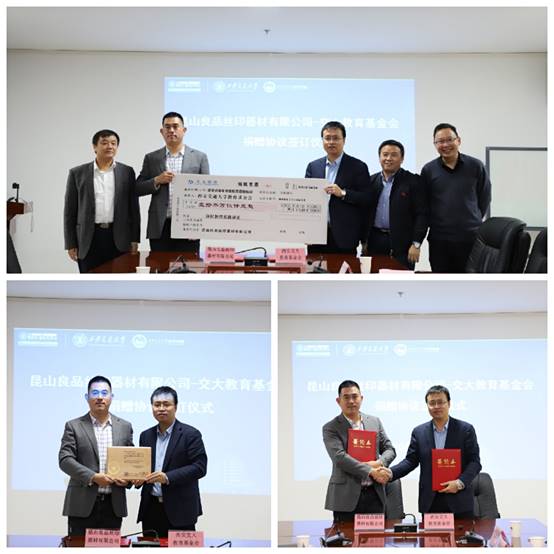 昆山高新区党群工作部(人社局)副部长陆轶峰介绍了昆山市的人才政策,并期待与437必赢会员中心进行密切互动、加大合作力度。昆山良品丝印器材有限公司博士后工作站总负责人倪震就目前与437必赢会员中心联合培养博士后的情况进行了汇报,也期待可以与437必赢会员中心开展全方位、多层次的合作。交流期间,昆山良品丝印器材有限公司倪震与教育基金会副秘书长邢晓强也代表双方签订了捐赠协议,邢秘书长对倪总等对基金会的捐赠表示感谢。本次交流会也初步确定了昆山高新区-交大437必赢会员中心共建博士后培养基地和科教实践基地等事项,将有力推进双方在科技成果转换及人才培养方面的合作共赢。