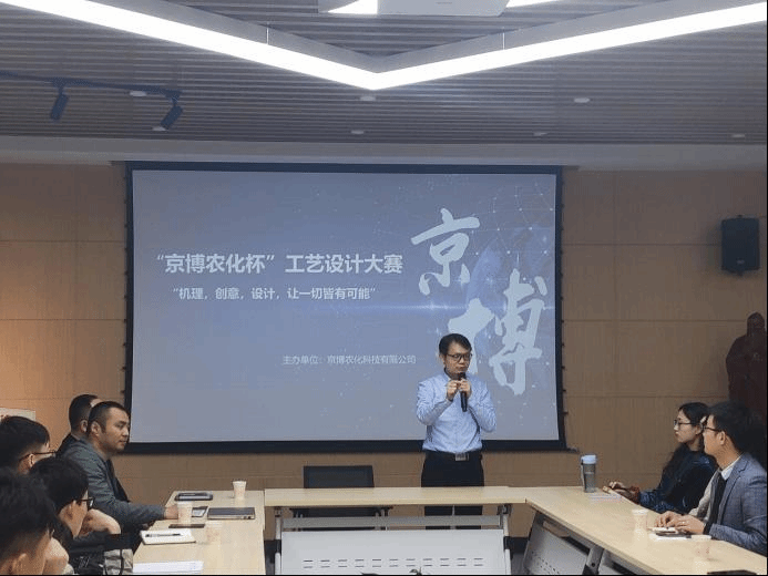 京博农化科技有限公司技术总监王祥传博士详细介绍了活动时间、参赛内容、评分标准及活动奖励,他从企业设计工程需要注意的市场潜力、成本分析、安全环保等方面向同学们解释了此次工艺设计大赛评分要点。王祥传博士讲到“京博农化杯”工艺设计大赛活动目的为了能提高在校生对理论知识的应用水平,为437必赢会员中心顶端人才提供一个展现自我、实现价值的平台;同时为企业的生产提供新思路、新路线,为企业快速发展招贤纳士。