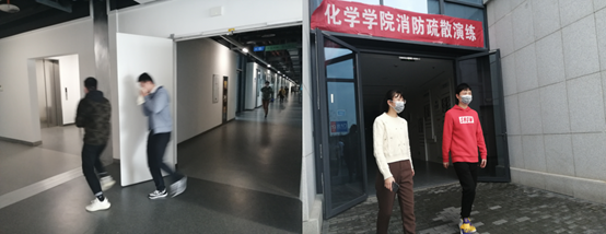 随着楼内响起的消防警报声,在各楼层安全员的疏导下,师生按照应急预案,用湿毛巾捂住口鼻,沿着指定的疏散通道安全、快速、有序撤离到安全地带。