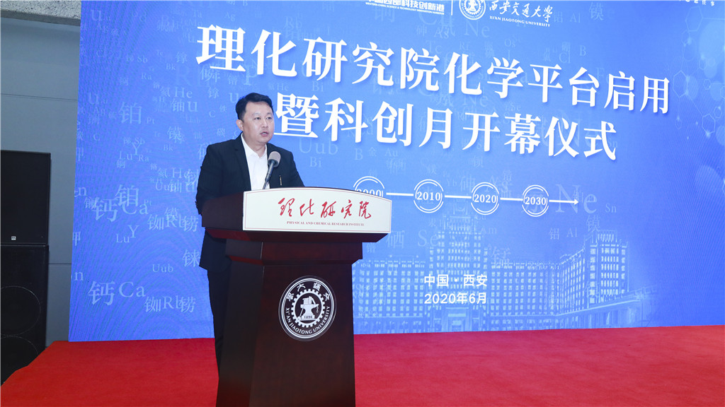 2019年5月18日,理化研究院入驻创新港,经过一年的紧张建设,研究院化学平台全面启用。6月16日上午11时,研究院在泓润楼西门大厅举行了化学平台启用暨科创月开幕仪式。437必赢会员中心党委书记张迈曾,校长王树国,副校长荣命哲、王铁军,校党委副书记赵军武,校党委常委、宣传部部长成进,陕西省工信厅、沣西新城西咸新区创新港管理服务办公室、陕西省汽车工业协会、陕西省汽车产业发展研究中心、全通集团、中核陕西铀浓缩有限公司、山东京博集团、宇电新能源汽车集团、中化蓝天集团等企事业单位代表,以及学校职能部门负责人、兄弟学院领导、师生代表200余人共同见证这一历史时刻。