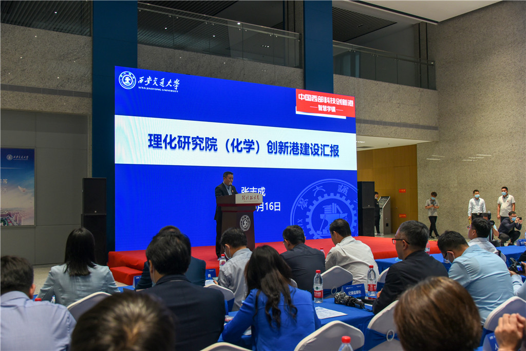 理学院党委副书记张志成介绍了理化研究院化学平台的建设情况,他自豪地说:“我们在创新港建设了世界一流的化学平台,从实验室硬件条件到智慧教室,充满了科技感和现代感。为我们的老师、同学和企业研发人员提供了最优越的科研、学习和生活条件。交大化学学科,1956年西迁后,建立化学教研室。2000年成立应用化学系,2010年搬入化学楼,2020年迁至创新港,开启新征程。化学人十年一个台阶,一步一个脚印,在过去的20年时间里,实现了初步发展。未来10年,我们将瞄准‘一带一路’、西部大开发、新基建等契机,在绿色有机合成化学、先进功能高分子、新能源材料化学等特色方向重点投入,实现跨越式发展。”