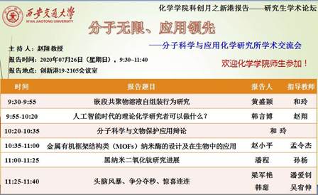 早上9点30分,交流会正式开始!赵翔教授作为主持人发言,并对同学们提出了殷切期望,希望同学们能够在此次交流会中畅所欲言,有所启发有所收获。接下来是此次会议的第一部分,由黄盛颖同学带来《嵌段共聚物溶液自组装行为研究》的精彩报告。黄同学从嵌段共聚物溶液自组装的方法讲到了调控自组装体形貌的方式以及嵌段共聚物溶液自组装的应用,如药物运输及缓释、刺激响应材料以及可溶解模板构筑等。该报告后同学们踊跃发言,对于嵌段共聚物溶液自组装的应用提出了很多设想。大家激烈讨论,收获颇多!之后,韩言博同学以《人工智能时代的理论化学研究者可以做什么?》为题为大家分享了新时代下计算化学所面临的机遇和挑战。他在报告中提出的“标准化实验”及“如何构筑关于化学实验的数据库”等观点引发了老师和同学们的热烈讨论,相信在不久的将来,化学领域与人工智能领域的交叉结合将为我们的科学研究提供更大的助力。