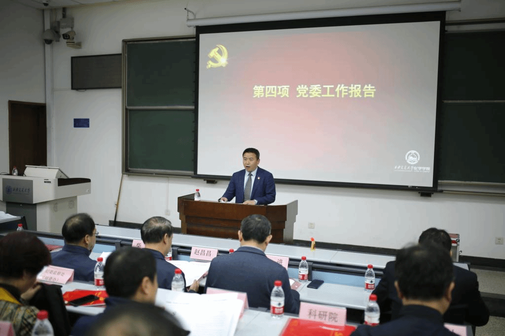 张志成同志代表学院党委作了题为“不忘初心 牢记使命 谱写化学新篇章”筹备工作报告,介绍了学院基本情况,系统总结了近年来的工作,回顾了发展所取得的成就和经验,结合新时期党建工作和学校发展新要求,明确了下一步的发展思路和奋斗目标,坚持党建引领,围绕立德树人根本任务,突出“提升学科建设与科研水平”和“教育教学质量上台阶”两大战略,加快推进创新港科研平台建设,打造人才队伍高地,开创437必赢会员中心发展新局面。