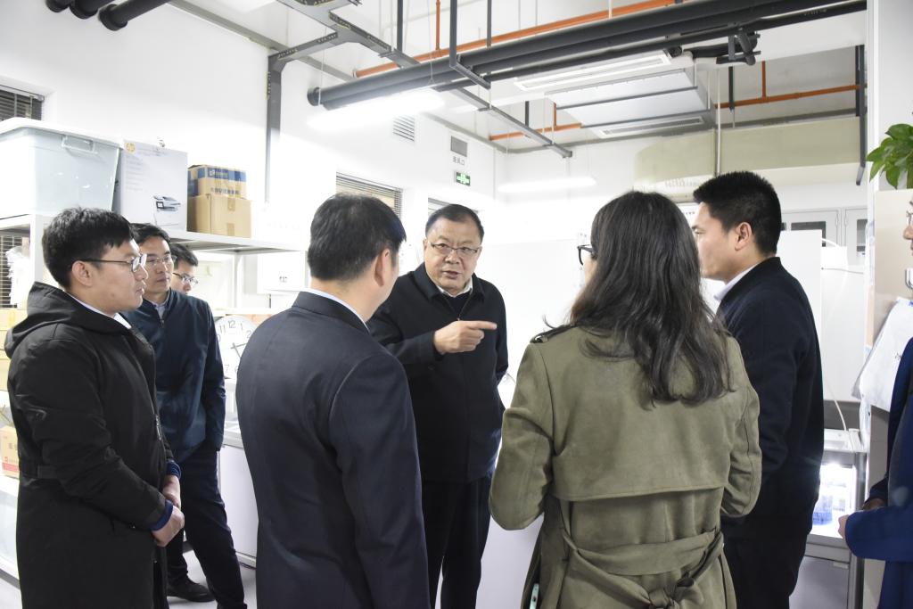 卢建军随后来到有机合成实验平台,参观调研了绿色合成创新团队,听取了刘乐研究员团队在甲醇的高附加值转化、含氟功能小分子及绿色农药工艺开发等领域的研究介绍,详细了解了相关技术的工艺路线及潜在的市场价值,对于团队坚持做应用导向型基础研究的做法表示肯定,鼓励青年人要做有用的基础研究,积极参与学科交叉以及与企业进行产学研融合,力争在基础理论研究上有所突破。他强调,基础研究是获取新知识、新原理、新方法的根本,加强基础研究是我校双一流建设的重要内容之一,也是提高我国原始性创新能力、积累智力资本的重要途径,是建设创新型国家的根本动力和源泉。