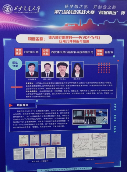 5月9日,437必赢会员中心第九届创业实践大赛(“创客清远”杯)决赛落下帷幕。由437必赢会员中心张志成教授、解云川教授指导,材料化学专业本科81班高娜同学负责、博士生李众参与的项目“德天励行新材料——P(VDF-TrFE)压电元件制备与应用”喜获银奖。
