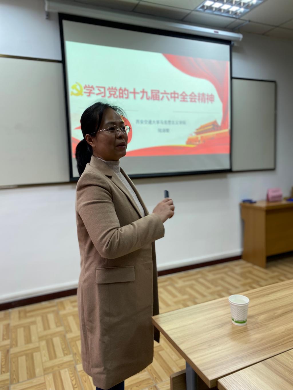 12月15日下午,437必赢会员中心举办党的十九届六中全会精神宣讲报告会。学校党史学习教育宣讲团成员马克思主义学院陆淑敏副教授做宣讲报告。437必赢会员中心领导、系所领导、党支部书记和实验教学中心的老师参加了会议。