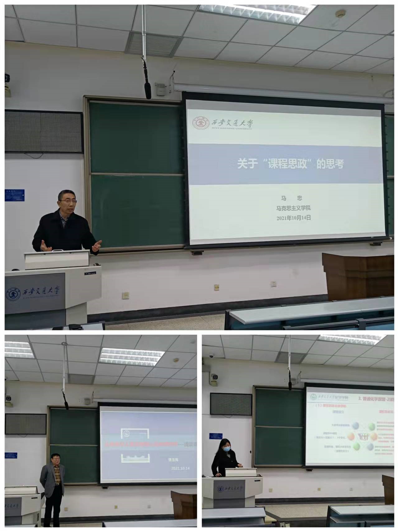 10月14日,召开了课程思政系列活动的第一场交流会,交流会上,马克思主义学院马忠教授带来关于“课程思政”的思考精彩报告,系统阐释了课程思政的正确内涵与基本原理,向在场教师传授了“教书”与“育人”有效结合、专业课程与思政元素有机融合的教学方法,为全体与会教师指明课程思政的建设方向。唐玉海、李银环两位老师分别立足于专业、课程、课堂,结合教学资源建设和课堂教学实践进行了经验分享。