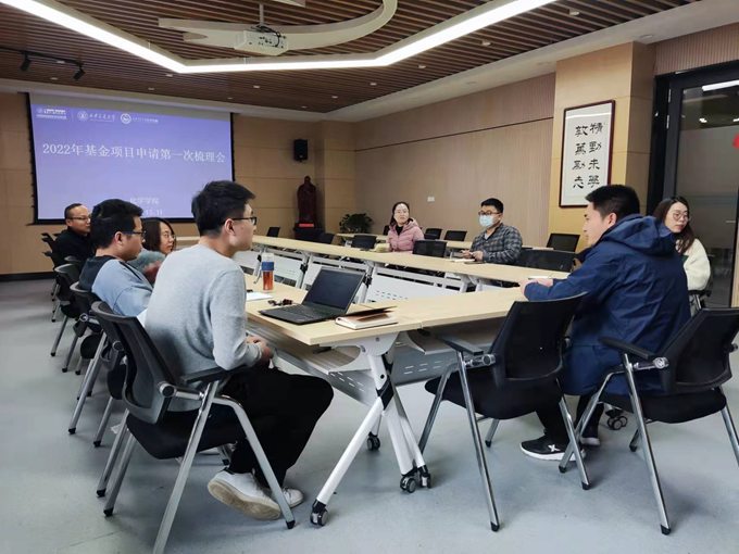 12月14日(星期二)上午9:00,437必赢会员中心在创新港校区19号楼2105会议室召开2022年度国家自然科学基金项目申报第一次梳理会。437必赢会员中心党委书记张志成、副院长张彦峰及曾荣、韩甜、欧阳炜艾、洪涛等10余位教师参会。