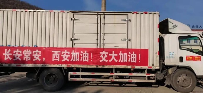 2021年的最后一天,两辆货车满载着爱心企业中核陕西铀浓缩有限公司捐赠的物资缓缓驶入创新港。