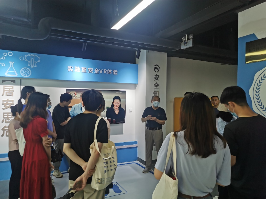 在讲解员的引导下,支部师生对实验室基础安全体验区、消防逃生演练区、事故现场模拟展示区、化学化工安全体验区、生物医学安全体验区、机械动力安全体验区、电与辐射安全体验区等10个区域模块进行了体验和学习。馆内不仅陈列了部分曾经发生在相关学校的实验室事故警示案例,还有工作人员进行相关实验室安全事故体验演示。比如,在实验装置中让观者实际观察由于用电超负荷,烧毁电线触目惊心的过程;实验室电气高压测试中的放电击穿空气,在空气中形成电弧的场景;高压线缆落地后,形成跨步电压,行走其中的人不慎触电的场景,以及正确施救措施的展示;模拟实验室内危险气体及粉尘引发爆炸的演示等。大家通过实操演练、互动体验、现场观摩及安全知识抢答等方式,系统全面地掌握了实验室安全知识,强化了安全意识,提升了隐患风险排除和事故处理能力。