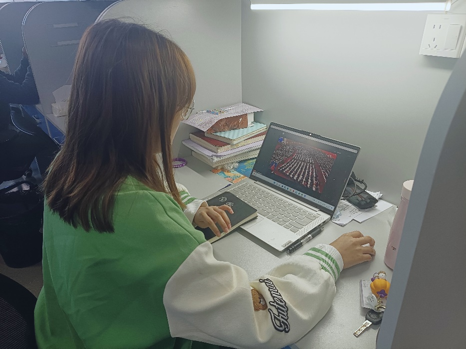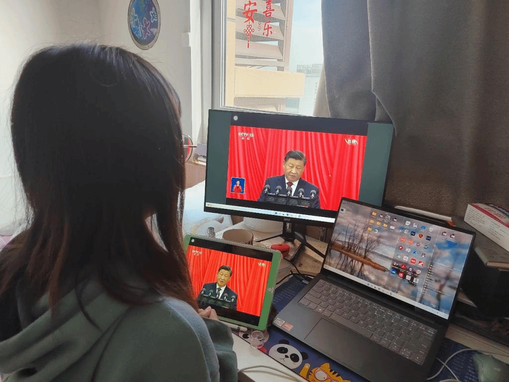 2022级博士生高娜也表示,中国共产党第二十次全国代表大会聚焦小康、经济、科教兴国、绿色发展、祖国统一等关键词,充分肯定了我国小康社会的建设成果。党的十九大到二十大,是实现“两个一百年”的历史交汇期,五年来,我们党团结带领人民,攻克了许多长期没有解决的难题,办成了许多事关长远的大事要事,推动党和国家事业取得举世瞩目的重大成就。经济建设卓有成效,一些关键核心技术实现突破,战略性新兴产业发展壮大;深入推进全面从严治党;开辟马克思主义中国化时代化新境界。党的二十大明确宣示了党在新征程的方向、道路及目标。对团结和激励全国各族人民为夺取中国特色社会主义新胜利而奋斗具有十分重大的意义。作为一名党员,在二十大的旗帜下,我们要自信自强,守正创新,踔厉奋发、勇毅前行,为全面建设社会主义现代化国家、全面推进中华民族伟大复兴而团结奋斗!