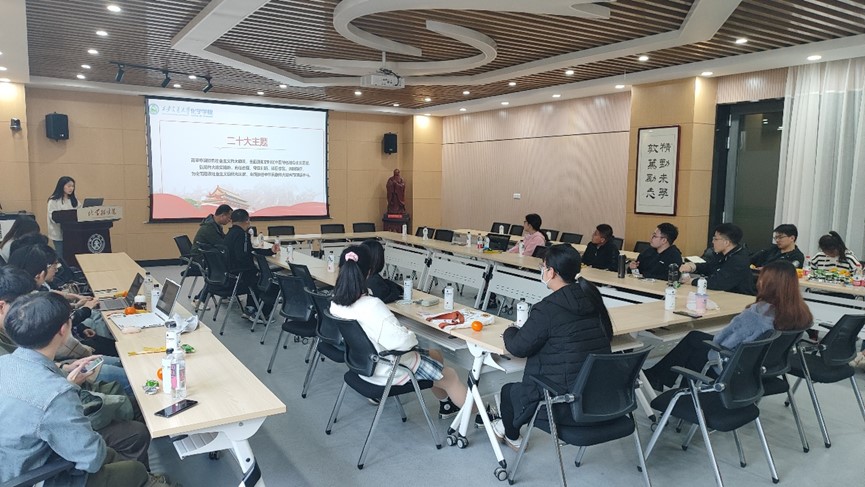 首先,支部集体学习党的二十大精神。汪紫薇同学带领大家学习了党的二十大精神。中国共产党第二十次全国代表大会,是在全党全国各族人民迈上全面建设社会主义现代化国家新征程、向第二个百年奋斗目标进军的关键时刻召开的一次十分重要的大会。大会的主题是:高举中国特色社会主义伟大旗帜,全面贯彻新时代中国特色社会主义思想,弘扬伟大建党精神,自信自强、守正创新、踔厉奋发、勇毅前行,为全面建设社会主义现代化国家、全推进中华民族伟大复兴而团结奋斗。