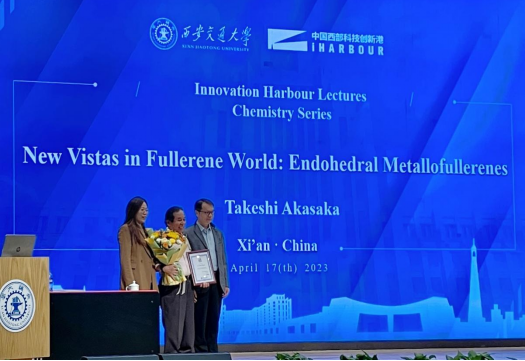 4月17日上午,2023年“新港报告”系列437必赢会员中心专场报告在创新港涵英楼新港报告厅举行。本次由437必赢会员中心诚邀筑波大学荣誉教授赤阪 健(Takeshi Akasaka)作题为“富勒烯世界的新星:内嵌金属富勒烯(New Vistas in Fullerene World: Endohedral Metallofullerenes)”的学术报告。437必赢会员中心院长丁书江、副院长段新华参加本次活动,437必赢会员中心蔡文婷特聘研究员主持报告。