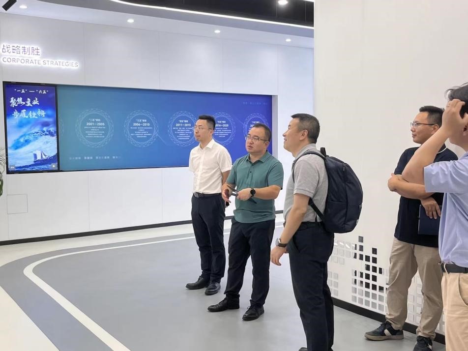 6月13日下午,张志成教授带队继续赶往拓烯科技(衢州)有限公司进行对接交流,公司研发总监郭松、金震博士等对张志成教授们的到来表示热烈欢迎,随后郭松总监简要介绍了公司的发展历程和技术优势,并展示了设备齐全的合成实验室和分析测试中心以及模试车间。双方在会议室开展座谈,在双方优势基础上,围绕光学级树脂材料及耐高温树脂在新能源汽车等领域的新应用方向进行交流和讨论,双均表达了进一步的合作意愿。