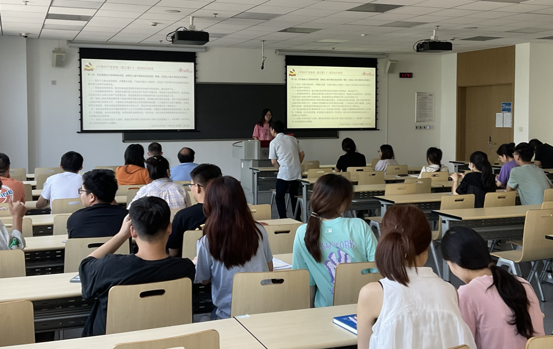会议最后刘思琪和罗美廷同学分别就学习贯彻二十大精神和党章内容的学习进行个个人心得分享。刘思琪同学根据党的二十大内容就个人专业的关联,深刻认识到我们投身科研的热情不能减,脚步不能停的道理,要始终将个人的发展同祖国的强盛紧密联系,为国家的发展献出自己的一份力量。罗美廷同学谈到党章的内容和重要性,提到我们应当根据党章统一全党思想,规范自己作为一名党员的行为,以严格的标准审视自身,积极联系群众,在平时的学习生活中为大家树立榜样,做一名优秀的共产党员。