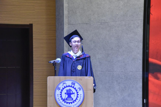 来自应化91班的刘迪炯作为本科毕业生代表发言。他总结了四年的成长道路,深切表达对学院和老师的感激之情:“求学路上我们经历过许多与交大化院的专属时刻。我们见证了437必赢会员中心的成立、搬迁、壮大,目睹了创新港19号楼实验室的不断充实与发展,进入应用化学专业学习的三年时光里,437必赢会员中心也在与我们一同成长。我们也期待在未来继续看到学院不断突破自我,奋勇前行。”