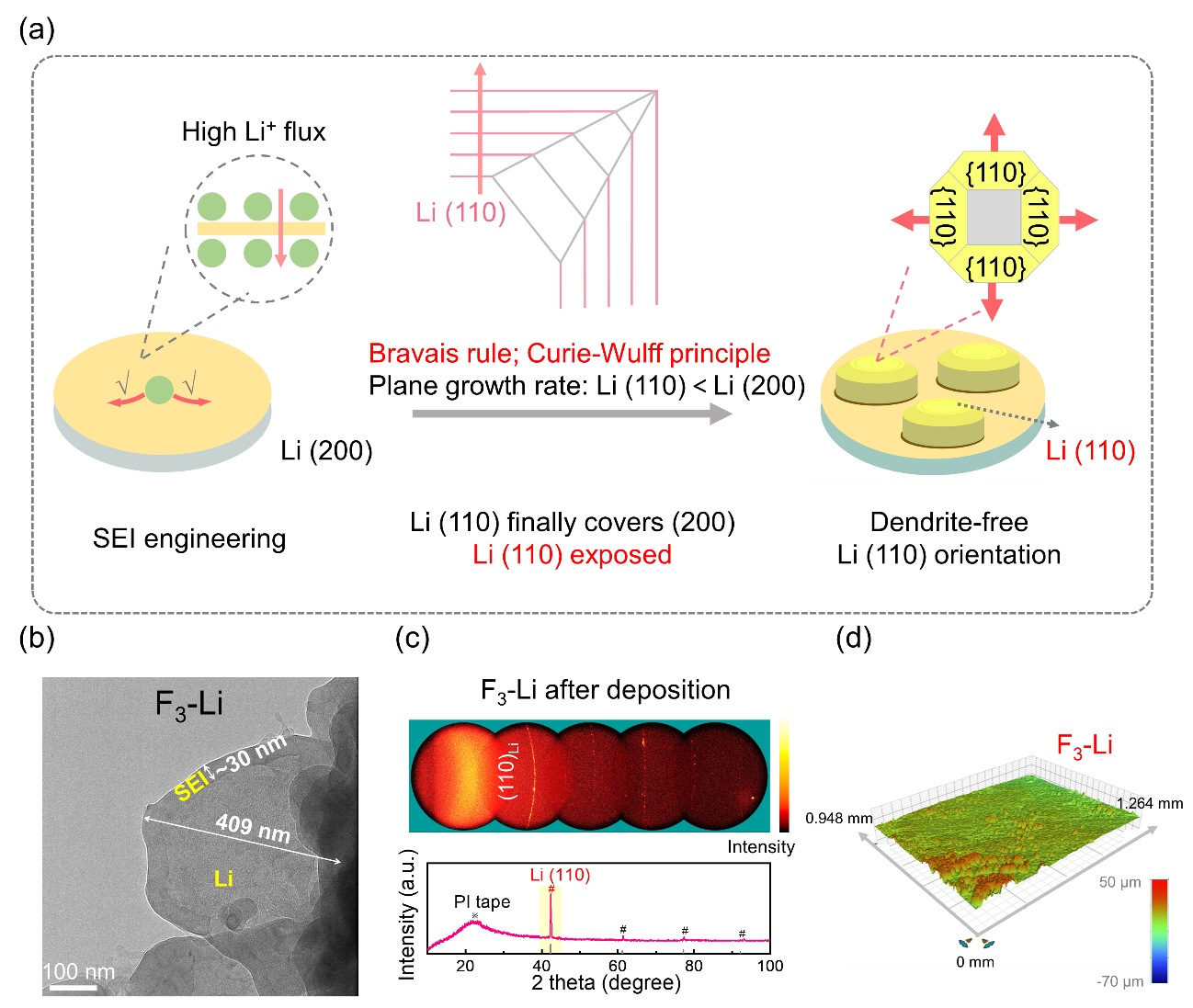 图1 SEI工程诱导无枝晶(110)取向锂沉积示意图