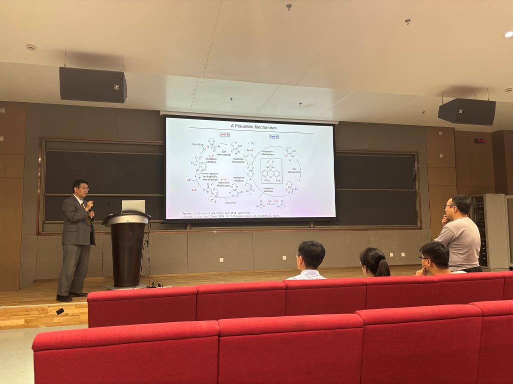 5月15日下午,冈山大学异分野基础科学研究所副所长Yasushi NISHIHARA(西原康师)教授受邀来到437必赢会员中心,并开展以“镍或钯催化的酰基氟化物和氯化物的脱羰基转化”为题的学术报告。来自437必赢会员中心、前沿院、生命学院、化工学院、药学院、材料学院等相关院系师生参加报告会,前沿科学技术研究院何刚教授主持报告。