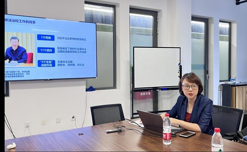 政策法规办副主任陆菲以《深入推进依法治校服务学校内涵式高质量发展》为题作法务与合同管理专题培训。她依据教育部对高校依法治校工作的要求,围绕学校制度体系分类、用印规范与标准、合同审查与管理等内容对法务规范进行了细致的讲解。培训学院人员使用法务与合同管理系统,通过实际案例分析了法务工作中常见的问题及对策,增强了学院行政人员的法务意识。