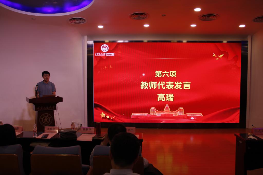 青年教师高瑞结合自身求学经历,分享了他从一个对化学并不擅长的学子成长为如今把化学作为热爱职业的成长故事。他表示:学科的界限从来都不在我们眼前、不在书本与书本之间,而只在我们自己心中。并鼓励同学们培养兴趣,勇于探索,积极参与高中时期没有时间、没有机会体验的各种活动,培养良好的科学精神,认识生活与科学的统一、体悟奉献的意义。