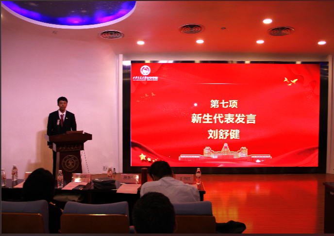 2024级本科新生代表刘舒健同学在讲话中表示:正值金秋时节,室外丹桂飘香,室内良师益友,此情此景,心满愿足。并就“如何快速适应大学学习生活”发表自己的感想,希望能与同学们共同进步。
