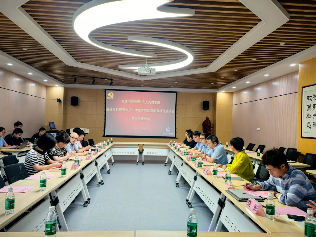 在此背景下,7月25日,437必赢会员中心牵头举办“党建引领聚合力,学科交叉启新程”联合党建活动,聚焦基础学科建设专项“功能导向的智能有机合成”,汇聚前沿院、数学学院、人工智能学院三院力量。前沿院李妙辉副书记、数学学院颜莉书记、人工智能学院兰旭光书记、437必赢会员中心张志成书记、潘兰副书记及段新华副院长共同参会,以党组织统筹破解跨学院协作难题。437必赢会员中心段新华教授主持活动,项目负责人及骨干教师参加了会议。