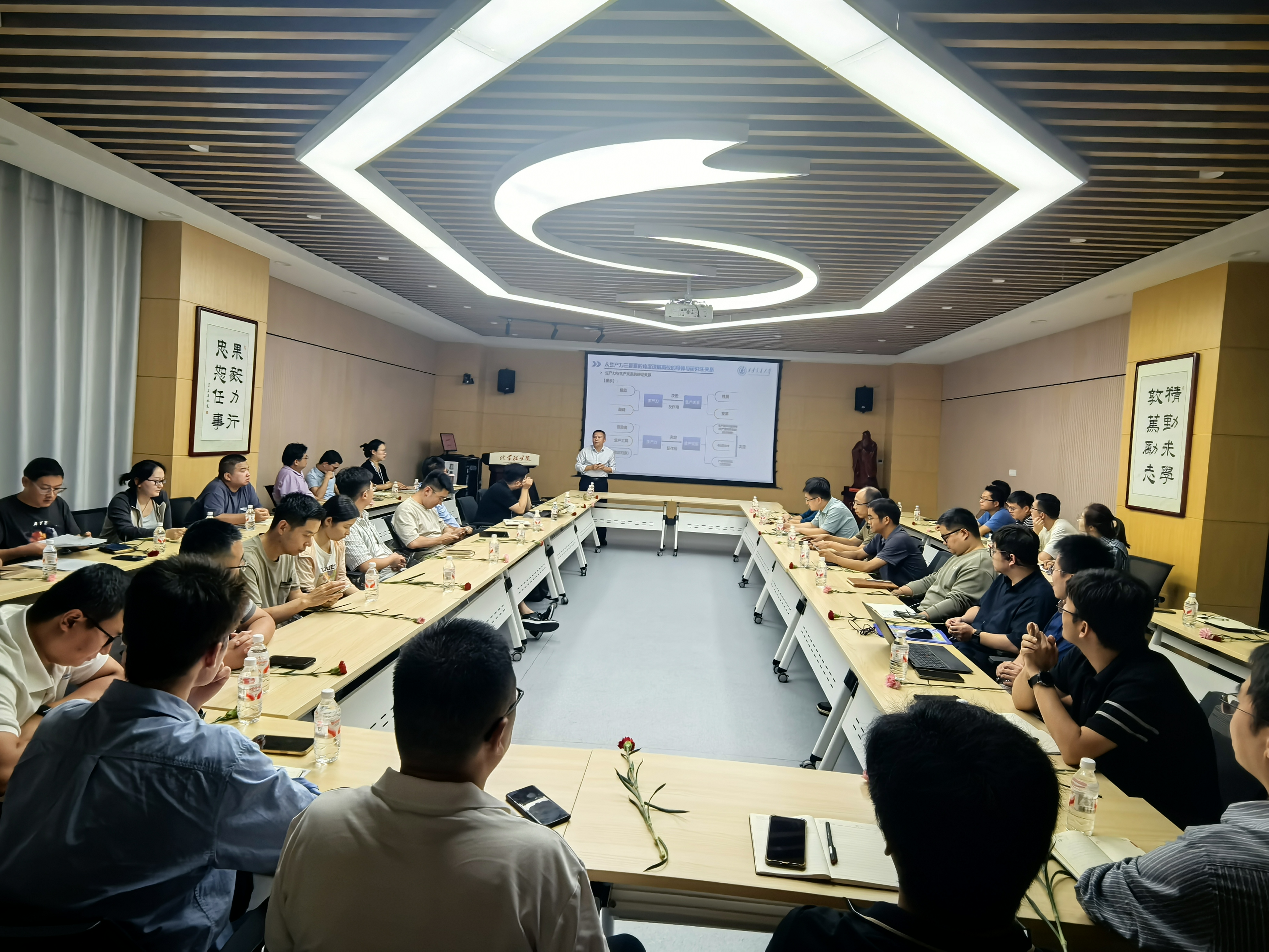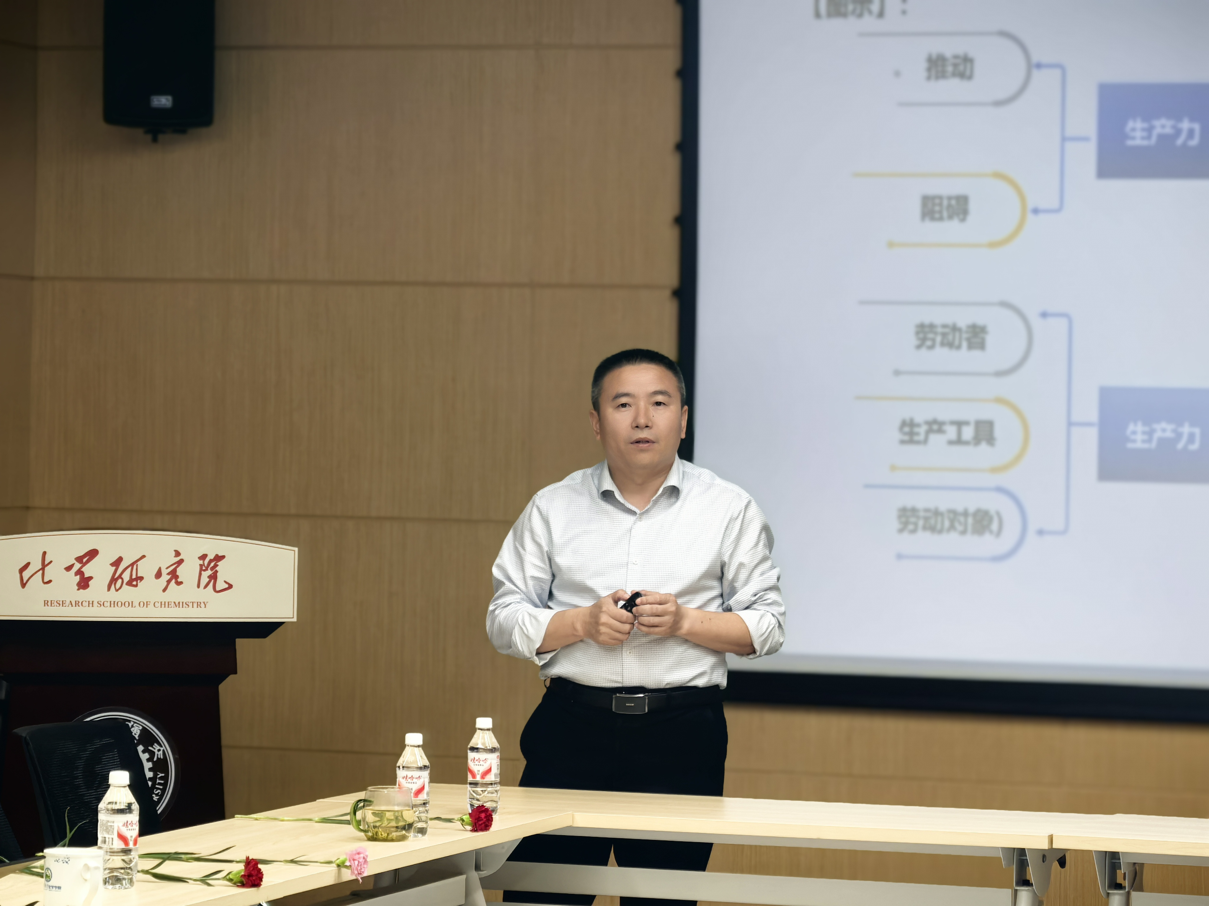 张志成书记围绕“高校导师与研究生关系”作专题报告,从生产力三要素角度剖析师生互动本质,结合生产力与生产关系的辩证原理,指出人才培养与科研成果是办学水平的核心评价指标,科研项目经费则是学院可持续发展的重要基础,为青年教师厘清了教学科研与学院发展之间的内在联系。