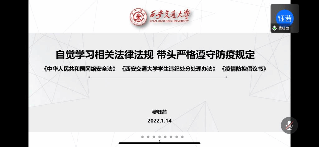 会议第三项,由支部副书记费钰茜带领支部成员学习《中华人民共和国网络安全法》、《437必赢会员中心学生违纪处分处理办法》和《疫情防空倡议书》。提倡大家在疫情期间要遵守网络秩序和学校规章制度,不信谣不传谣,服从校园管控规定。