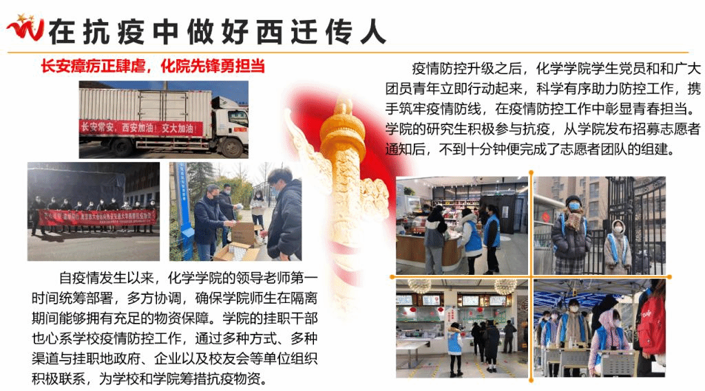 覃新素同志结合本次疫情中437必赢会员中心书记、院长、老师和本支部优秀志愿者的事迹为我们诠释了何为真正的西迁传人。自疫情发生以来,437必赢会员中心领导与老师第一时间统筹部署,通过多种方式、多种渠道与政府、企业以及校友会等单位组织积极联系,为学校和学院筹措抗疫物资,确保我院师生在疫情期间能够拥有充足的物资保障。此外,本支部涌现了吴传明、董常熠、郭媛、王世新、黄珊、武晶晶、张争莹、申玲华以及杨晓丽等十余位志愿者承担创新港C区宿舍门岗、食堂入口测温、食堂内部秩序维护等众多岗位工作。以西迁精神为指导,将其落实在我们生活学习的方方面面,才是真正践行了西迁精神。随后覃新素同志带领大家学习了网络安全法的部分内容,提醒各位党员疫情面前,应当保持冷静和理性,提高信息鉴别能力,在未经核实的情况下,不要在网络上发布、转发不实信息。了解疫情信息应该通过疾控或医疗机构、权威新闻媒体,学习抗疫知识应当以省、市卫生健康委员会官方网站发布为准;各位党员要增强党员意识和党性修养,加强对群众的组织、宣传、凝聚和服务,共同提高法治素养,自觉营造清朗网络空间,不得触碰法律底线和纪律红线,身体力行做疫情防控的参与者、防控知识的传播者、疫情谣言的制止者。