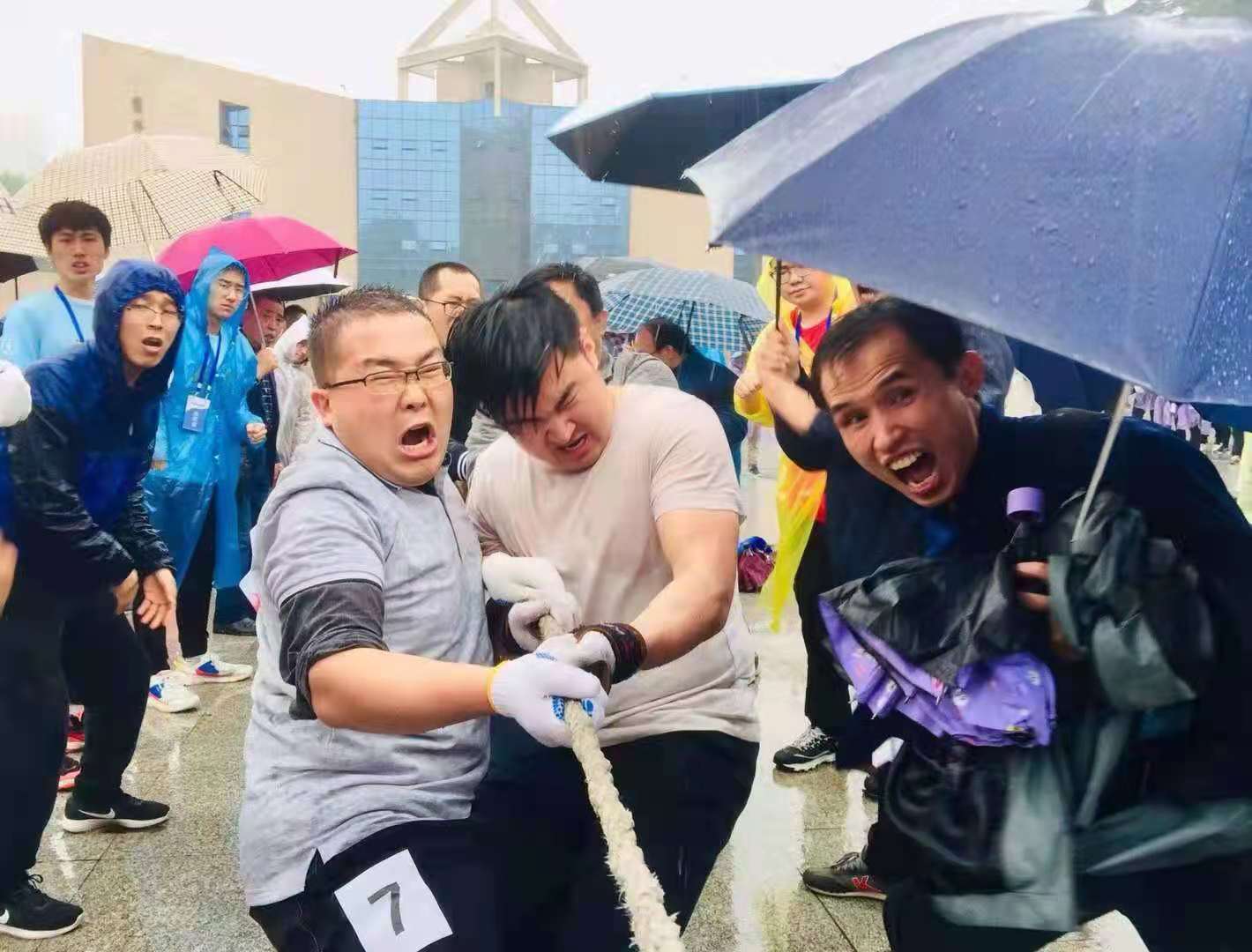 大雨滂沱,荣获拔河比赛第五名,创造学院历史最佳成绩!