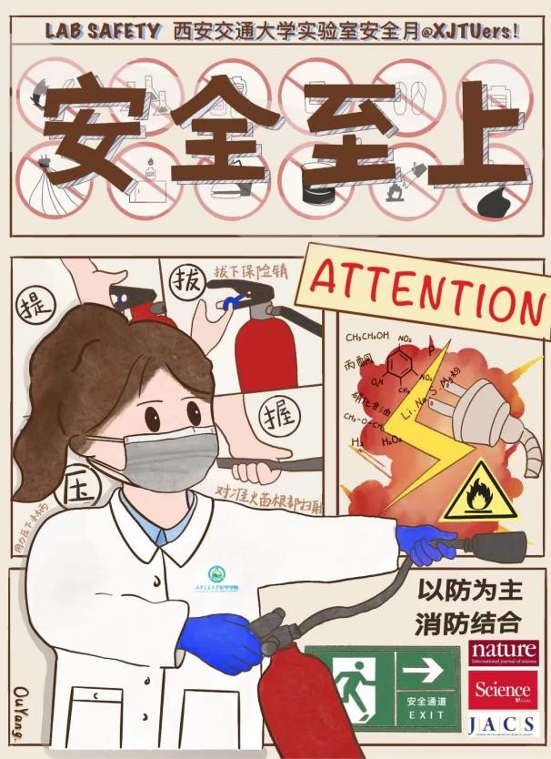 在2022年度“实验室安全海报设计”大赛中,我院共有四个学生作品获奖:王鹏程的作品《实验室安全系列》勇夺第一名,获得了一等奖的好成绩;蒙艺的作品《别让气瓶“生气”》、姜显智的作品《实验在我手中,安全在我心中》及欧阳雨馨的作品《安全至上》海报分别荣获优秀奖。