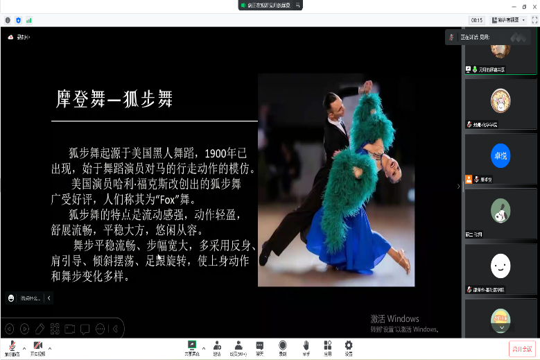 12月17日,我院开展了线上体育舞蹈讲座,该课程从舞蹈基础知识、舞姿欣赏、舞蹈服饰等多方面向各位研究生讲解了国标舞。跳舞不仅能培养气质、健康社交,也能有氧塑形、愉悦身心,还能提高审美情趣,塑造健全人格,有助于广大研究生的全面发展。