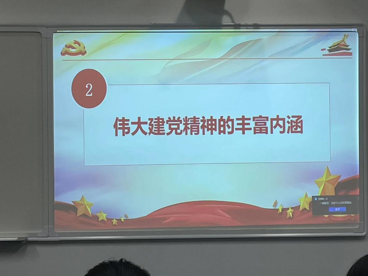 接着,高维娜同志带领大家深刻了解了伟大建党精神的丰富内涵:坚持真理、坚守理想,即求真精神,强调我们党重视理论、胸怀理想;践行初心、担当使命,即践行精神,强调我们党重视实践、不尚空谈;不怕牺牲、英勇斗争,即斗争精神,强调我们党意志坚强、不可阻挡;对党忠诚、不负人民,即奉献精神,强调我们党价值崇高、心系人民。