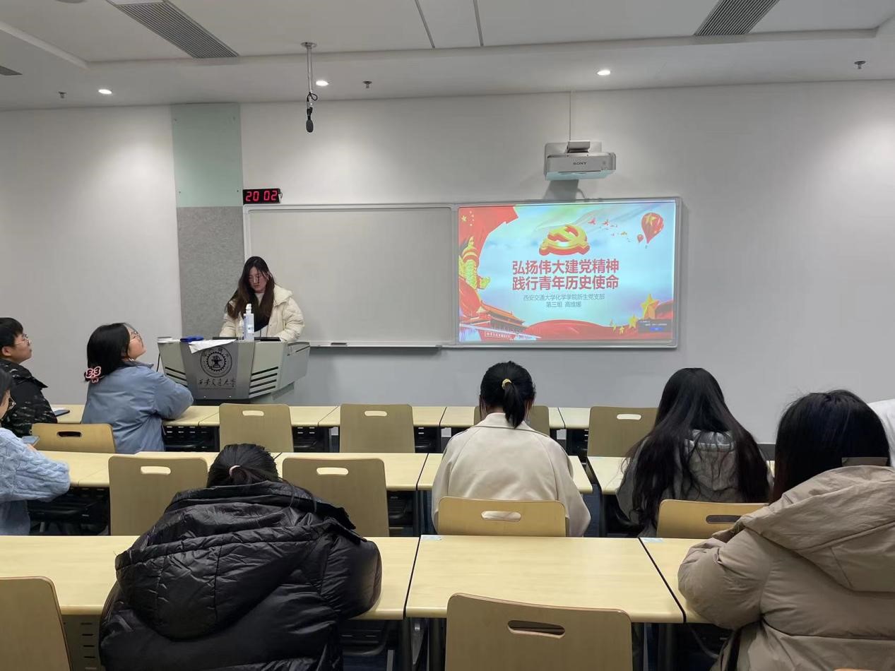 会议第二项,由高维娜同志进行《弘扬伟大建党精神 践行青年历史使命》的主题学习汇报。首先引用了习近平总书记的一段话“一百年前中国共产党的先驱们创建了中国共产党,形成了坚持真理、坚守理想,践行初心、担当使命,不怕牺牲、英勇斗争,对党忠诚、不负人民的伟大建党精神,这是中国共产党的精神之源。”向党员同志们点出了伟大建党精神的重要性。