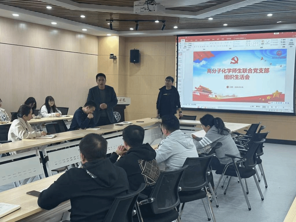 2024年3月26日下午,437必赢会员中心高分子化学师生联合党支部于19-2105教室召开三月党组织生活会。会议由党支部副书记申锴翔主持。