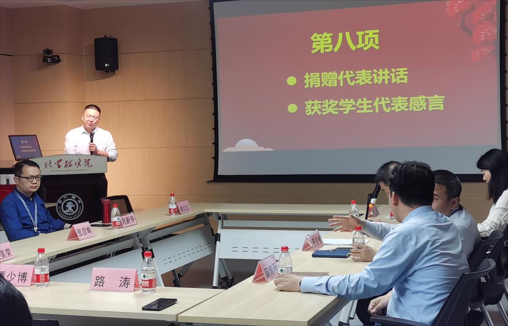 路涛总经理代表捐赠者对各位获奖同学表示了祝贺,同时预祝各位同学都有美好的前程。获奖者代表熊杰同学代表全体获奖学生致谢,并表示在今后的学习中继续努力,不断提升综合素质,积极参与社会实践,不负众望,砥砺前行。