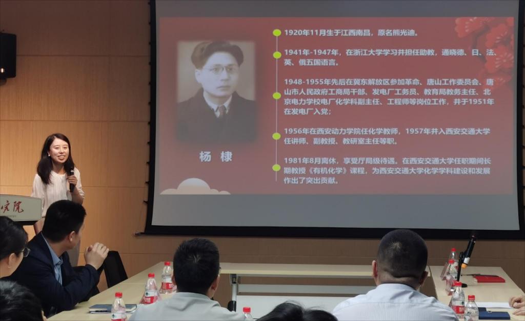 毛珊老师向在座的各位获奖同学表达了祝贺,并介绍“杨棣奖学金”的来历和设立初衷,传承交通大学的饮水思源精神,勉励各位同学勤学奋斗,再创辉煌。随后,张彦峰老师为大家介绍了杨棣老师的生平事迹,在座的师生都被杨棣老师专注科研、不怕吃苦、不怕吃亏的精神深深鼓舞。