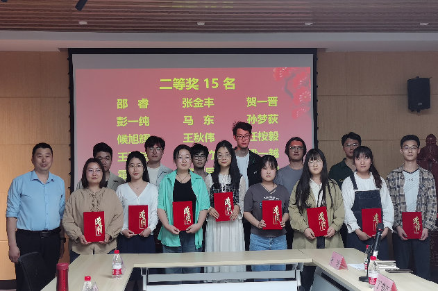课题组奖学金部分,熊杰同学蝉联特等奖学金,程益品等13名同学荣获一等奖学金,邵睿等15名同学荣获二等奖学金,伍明静等16名同学荣获三等奖学金。与会嘉宾薛周利、毛珊、丁书江、张彦峰老师分别为获奖学生颁发证书。