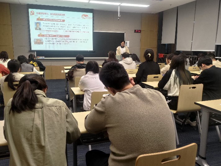 接下来,新生党员沈子怡同志带领支部成员对加强思想学习,自觉推进党建发展进行了系统学习。沈子怡表示,要发扬老教授们这种西迁精神。重大的历史进步都是在一些重大的灾难之后,我们这个民族就是这样在艰难困苦中历练、成长起来的。我们的交大人,我们西部的同志们,也一定会在未来的新时代的历史进程中,为中华民族立下卓越的贡献。