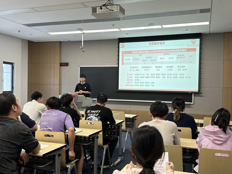 2025年6月10日下午,可持续与极端环境高分子研究所师生联合党支部于19-5108教室开展六月份党组织生活会。会议由党支部副书记李仁杰主持。