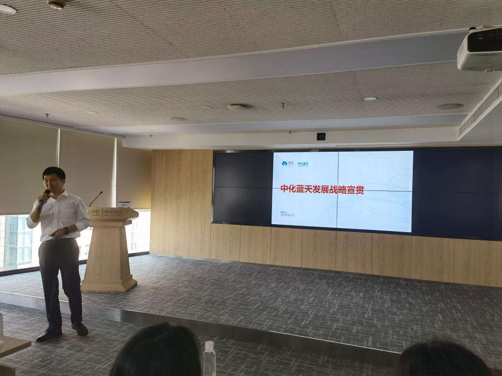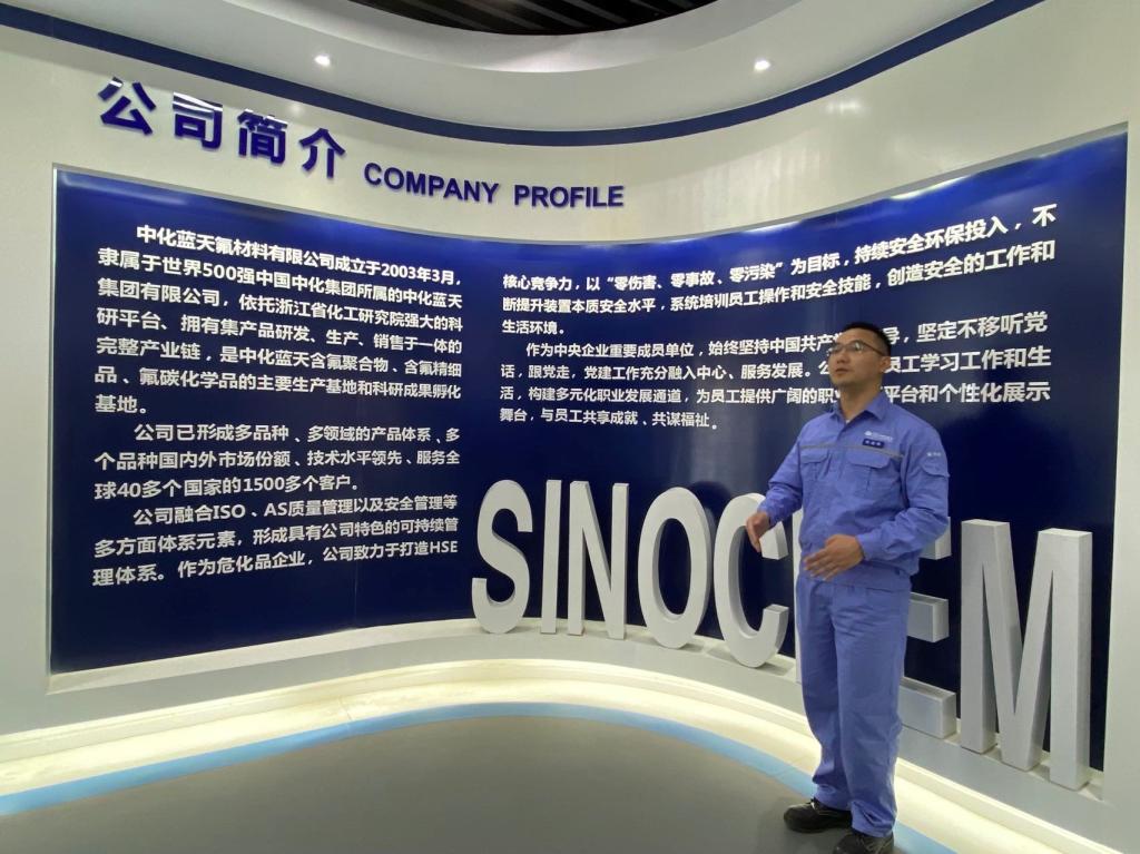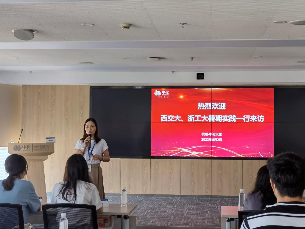 8月2日上午,实践团队一行10人到达杭州中化蓝天集团总部进行参观学习。中化蓝天人力资源部经理邵赛蓉首先对大家的到来表示热烈的欢迎并做了基本的安全知识分享。战略规划部副总经理魏继兴进行了中化蓝天发展战略宣贯的分享会,让同学们对中化蓝天公司的概况、研发产品、研发领域、创新平台等有了更深一步的了解,同学们进行了积极提问与热烈谈论,魏总认真解答了同学们的问题。会后,实践队员走进中化蓝天的数字展厅,在讲解员的带领下同学们对中化蓝天的企业认知更加深刻。