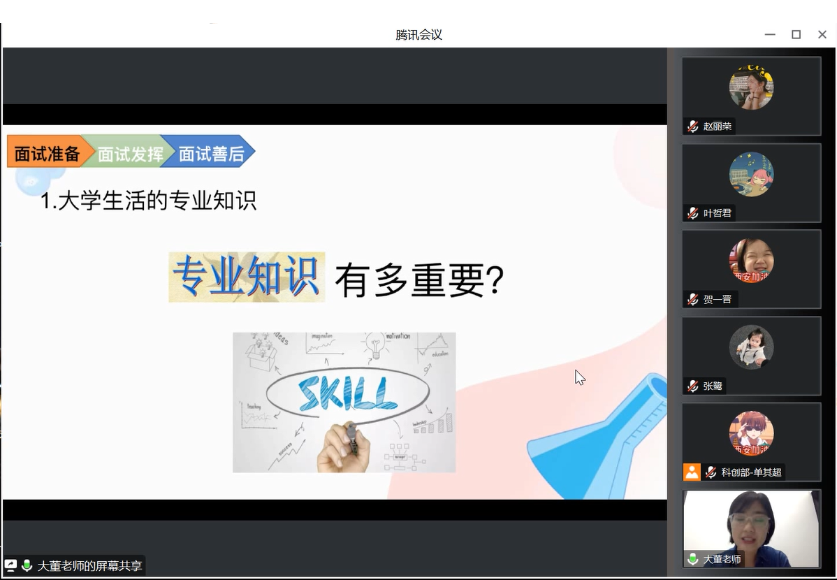 为满足广大研究生的求职需求,提升研究生就业质量,鼓励有理想、有信念、有担当的交大学子建功立业,2023年5月18日19时,437必赢会员中心2024届毕业生面试技巧专题讲座通过线上腾讯会议形式成功举办,吸引了全院不同年级的同学参加。本次讲座邀请到学而思大学生考研教育学专业负责人、教育学主讲老师、就业指导老师——大董老师给本院学生分享求职相关事宜,本次分享会由437必赢会员中心团委科创部部长单其超主持。
